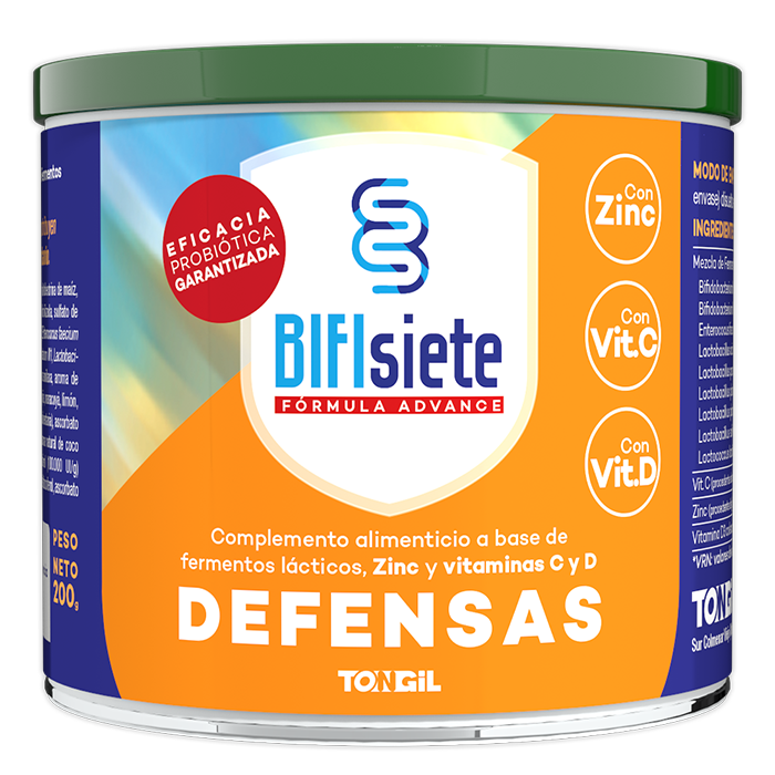 2000 millones de UFC procedentes de 9 cepas de fermentos lácticos seleccionadas en una matriz específica con función protectora y nutritiva, estabilizados a través de la tecnología ProbioAct® para aumentar la eficacia de Bifisiete Formula Advance Defensas, que garantiza una alta supervivencia a través del tracto digestivo y su activación en el intestino.