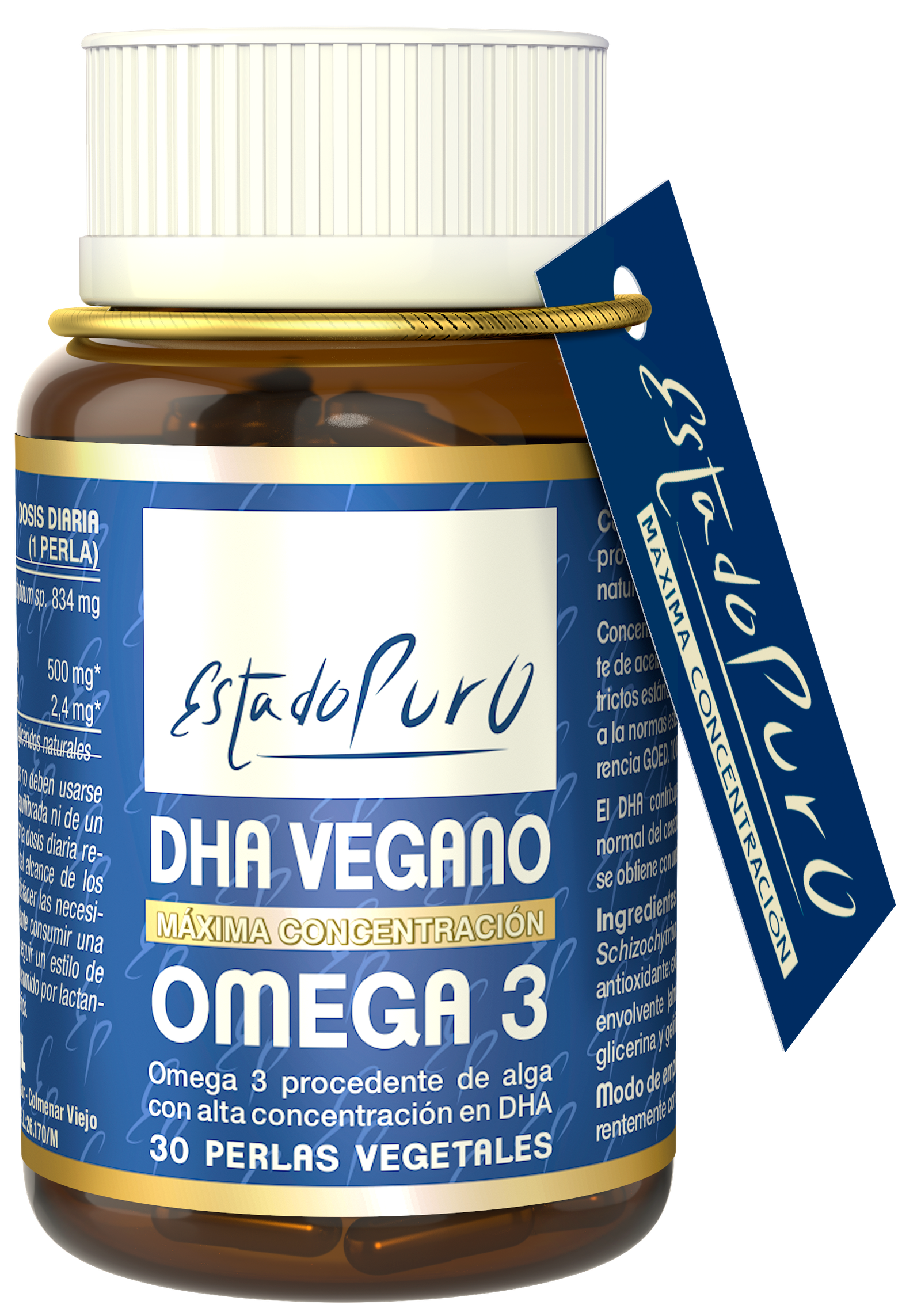 Concentrado natural de DHA (500 mg/perla) procedente de aceite de la microalga Schizochytrium sp., obtenido bajo los más estrictos estándares de calidad y pureza, de acuerdo con las normas establecidas por la Institución de Referencia GOED.