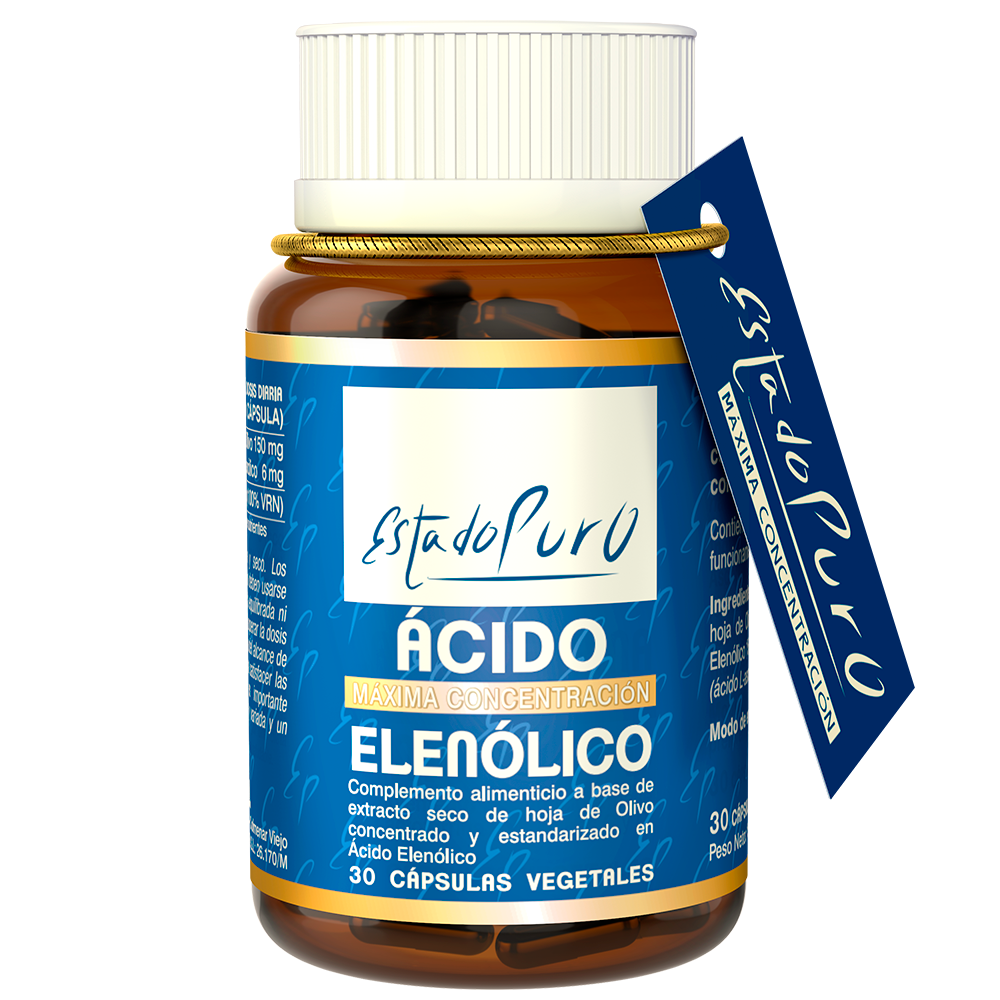 A diferencia de otros productos de hoja de Olivo que aportan activos como la oleuropeina o el hidroxitirosol, ESTADO PURO consigue un extracto que concentra el componente activo Ácido Elenólico, de estructura química y propiedades bien diferentes del resto de los activos presentes en la hoja de Olivo, y reforzado con Vitamina C, que contribuye al funcionamiento del Sistema Inmunitario.