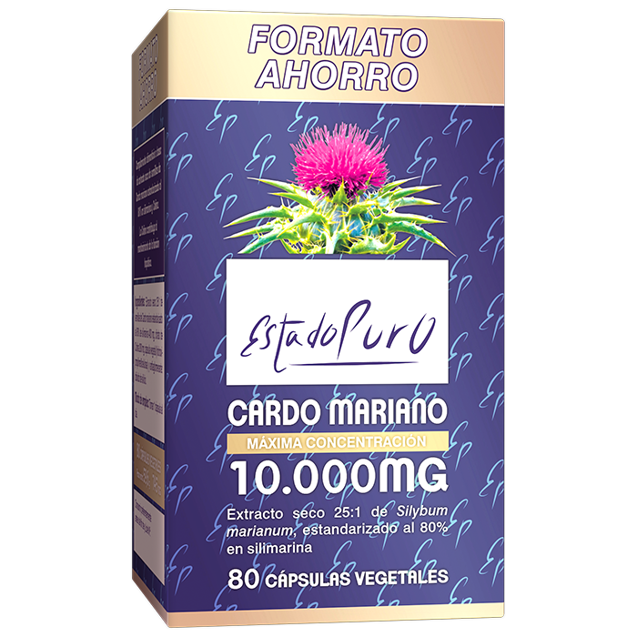 El extracto seco de semillas de Cardo mariano utilizado en Estado Puro procede de la especie Silybum marianum, y se caracteriza por la máxima concentración en principios activos, alcanzándose un ratio 25:1 con respecto a la planta fresca.